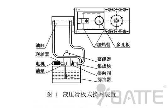 液壓滑板式連續(xù)換網(wǎng)裝置,它通過液壓缸活塞的推力,將裝有兩個(gè)分流過濾網(wǎng)孔的滑板往復(fù)移動(dòng),臟網(wǎng)推出更換,新網(wǎng)安裝后推進(jìn),實(shí)現(xiàn)瞬間快速換網(wǎng)。該換網(wǎng)裝置結(jié)構(gòu)緊湊,操作方便快捷,在不停機(jī)狀態(tài)下?lián)Q網(wǎng)工作在1-2s內(nèi)就可完成。實(shí)現(xiàn)不停機(jī)換網(wǎng),可避免因換網(wǎng)而造成的生產(chǎn)停頓、原材料與能源損失,有利于節(jié)約成本,在塑料擠出生產(chǎn)線上使用較多。但液壓滑板式器的換網(wǎng)裝置在結(jié)構(gòu)上存在著一個(gè)較大缺陷。